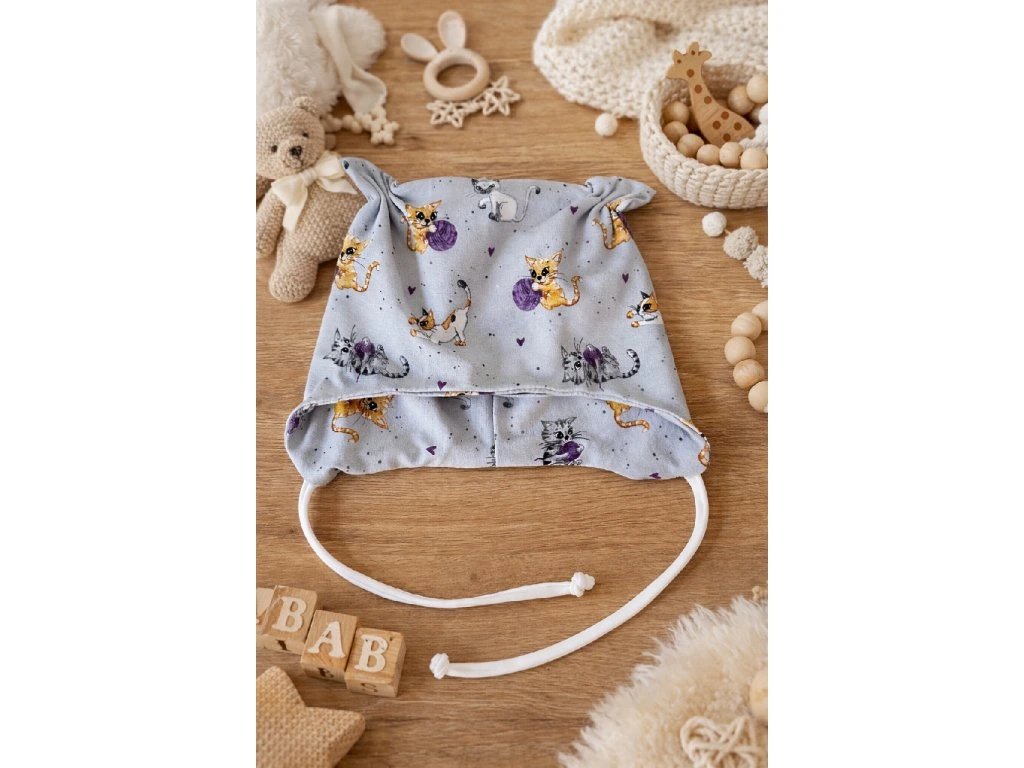 Čepička s kočičkami na zavazování pro děti