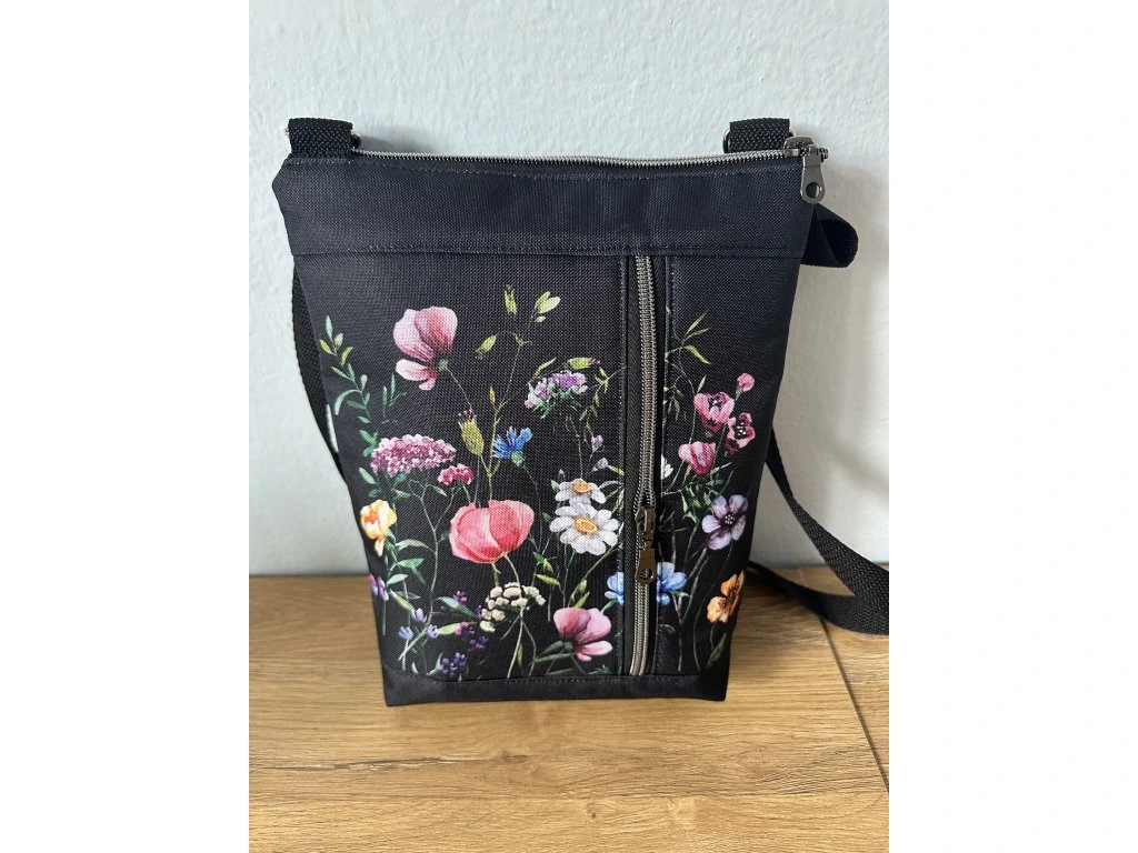 Krásná a praktická crossbody kabelka s květinovým motivem, která zaujme na první pohled.