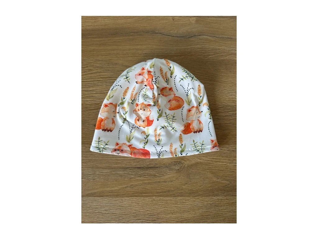 Dětská krásná čepice s liškami - podšitá - ruční výroba