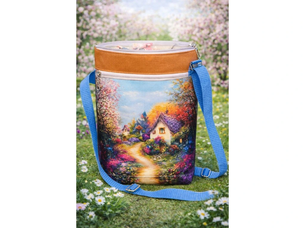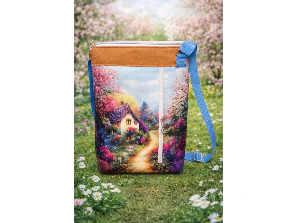Praktická a stylová crossbody kabelka Ála s krásným domečkovým motivem. Kabelka je ušitá z odolné kočárkoviny, vyztužená ronolinem, takže krásně drží tvar.