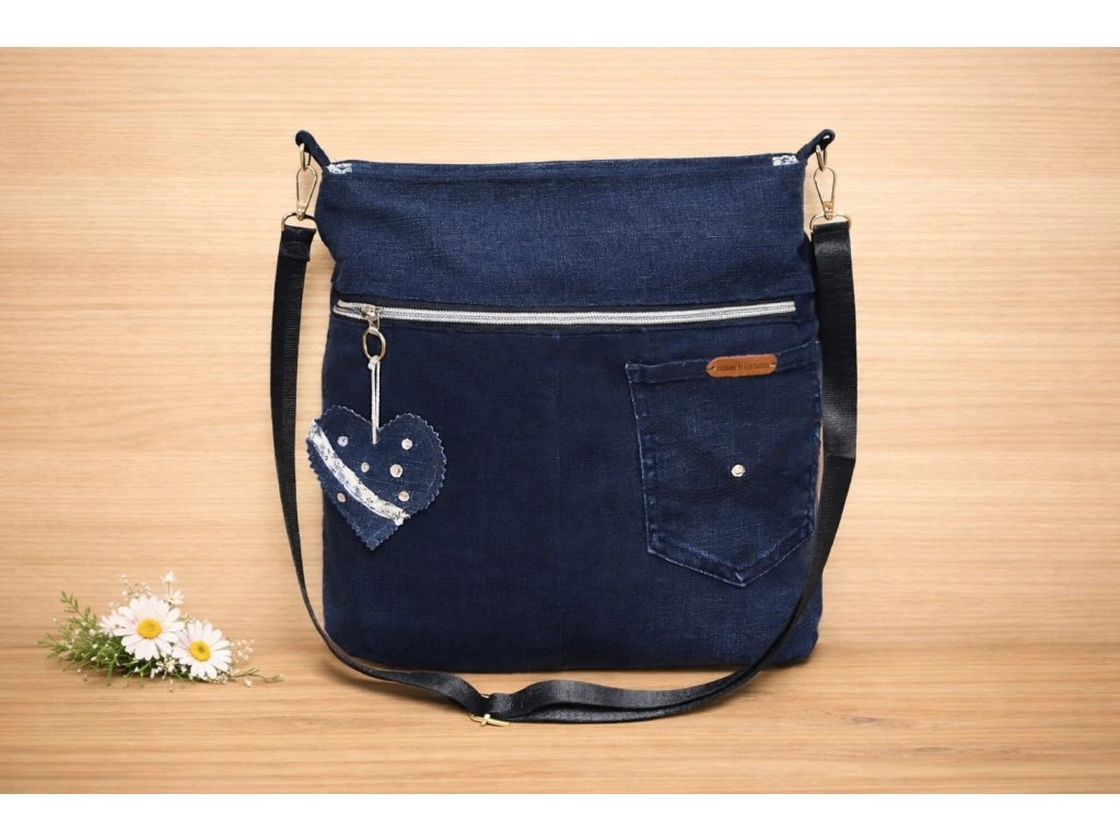 Dnes se opravdu povedla – stylová kabelka z tmavě modré džínoviny, která je praktická a zároveň originální.