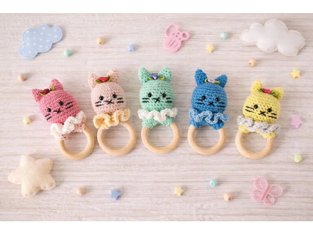 Háčkované chrastítko – kočička 🐱 pro děti - ideální dárek pro miminko