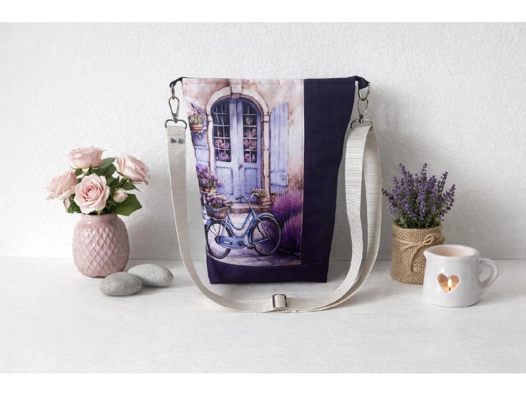 Krásná a praktická crossbody kabelka s motivem provensálského léta, ušitá z voděodolné kočárkoviny. Kabelka je vyztužená ronolinem, takže krásně drží tvar a je vhodná na každodenní nošení.
