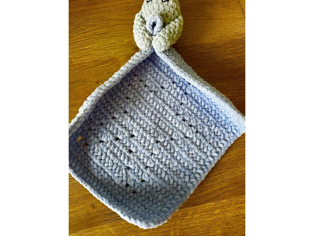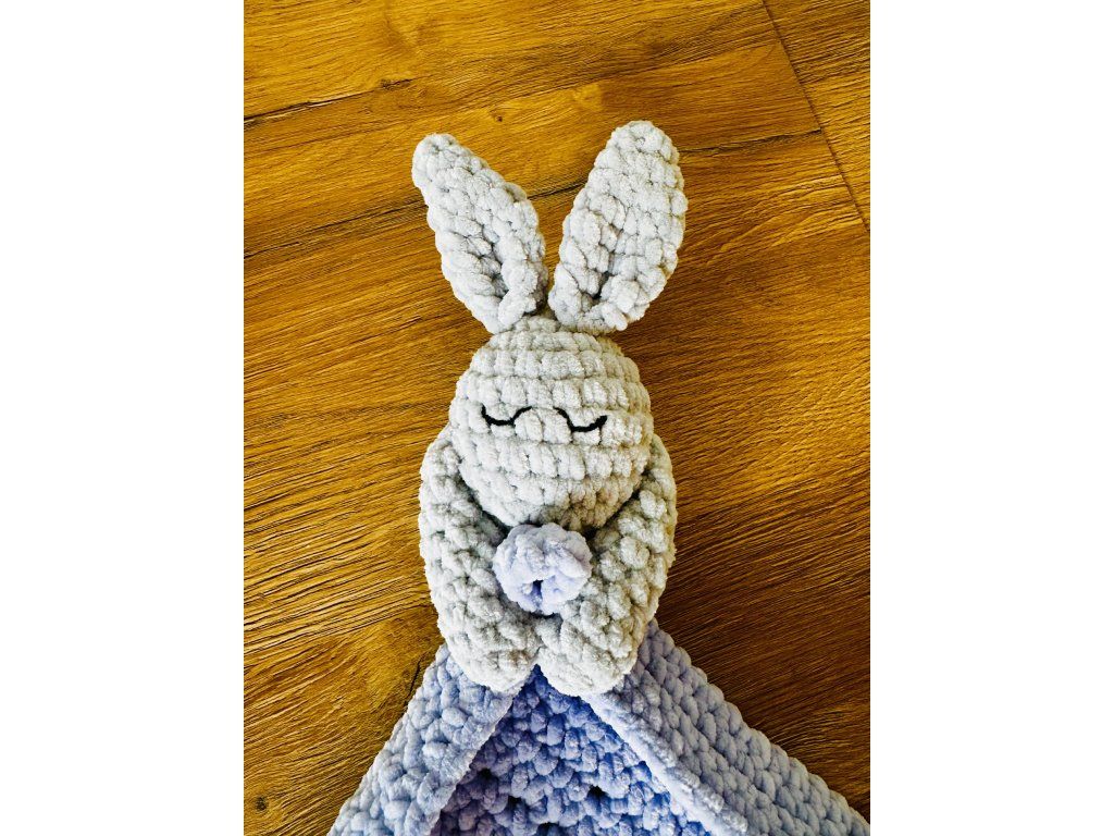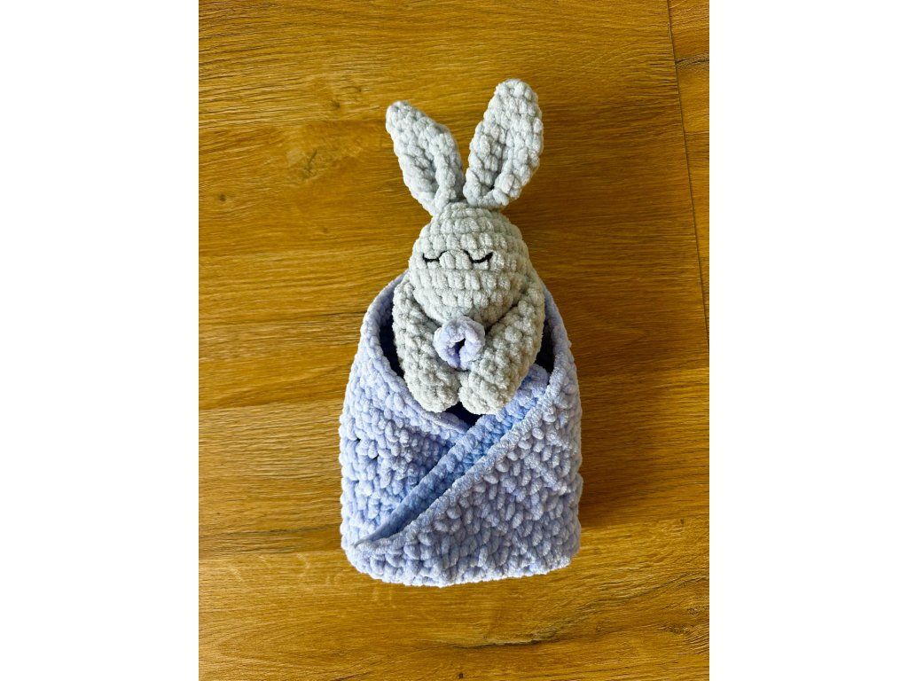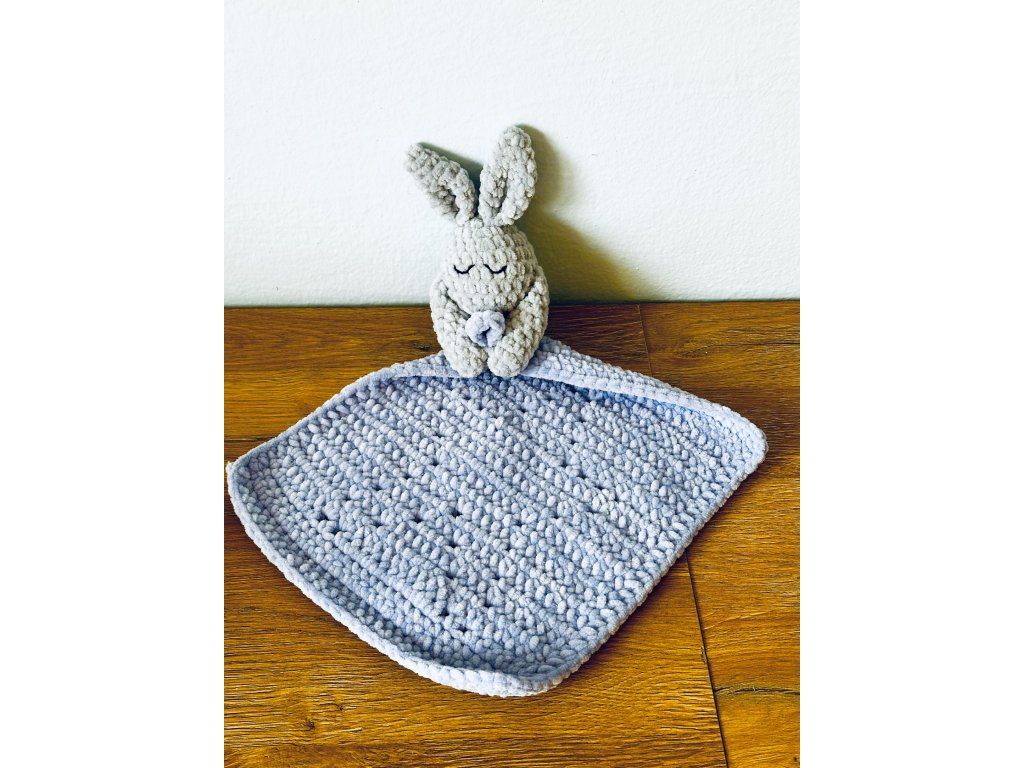 Zajíček Muchláček je uháčkovaný z velmi příjemné příze Dolphin baby , je úplně měkoučký, vyplněný dutým vláknem , na dečce je hvězdička