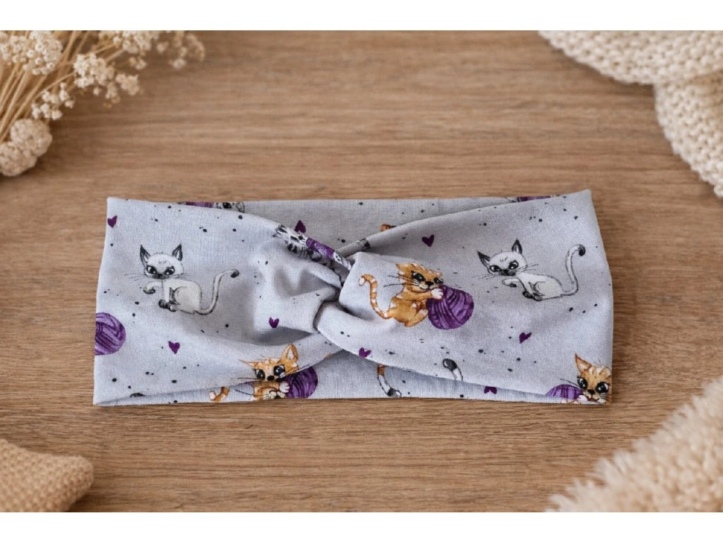 Úpletová čelenka s kočičkami 🐱