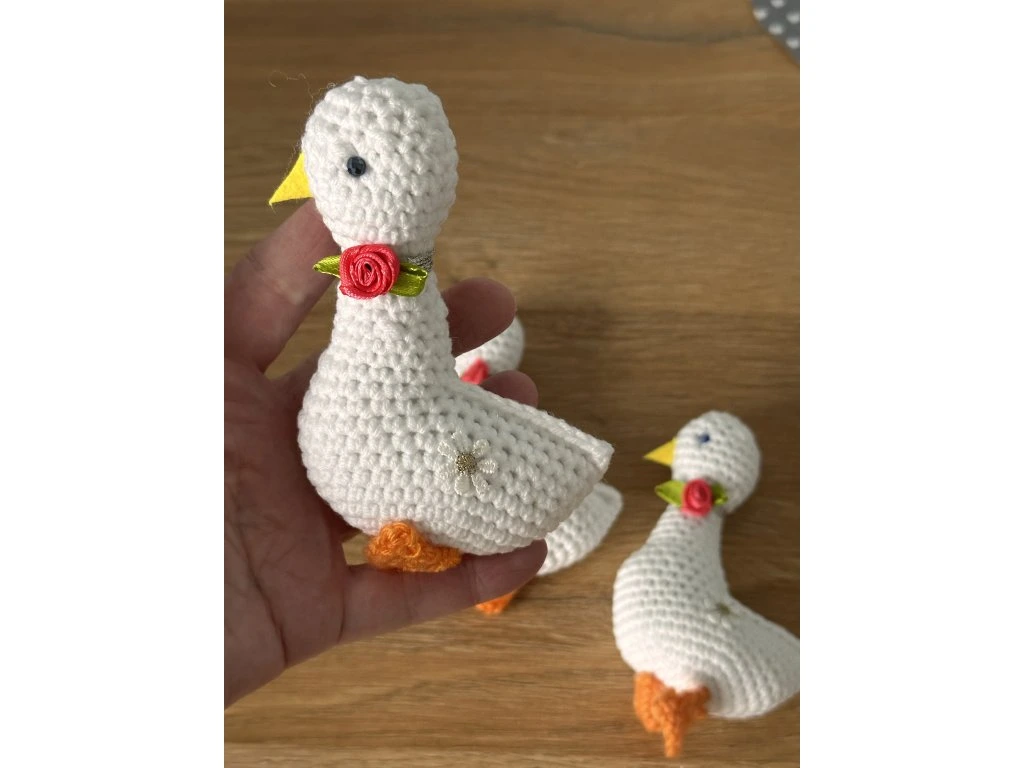 Roztomilá háčkovaná husička je ručně vyrobená dekorace, která krásně doplní vaši jarní či velikonoční výzdobu. Husička je vyplněná dutým vláknem, takže je lehká a dobře drží tvar.